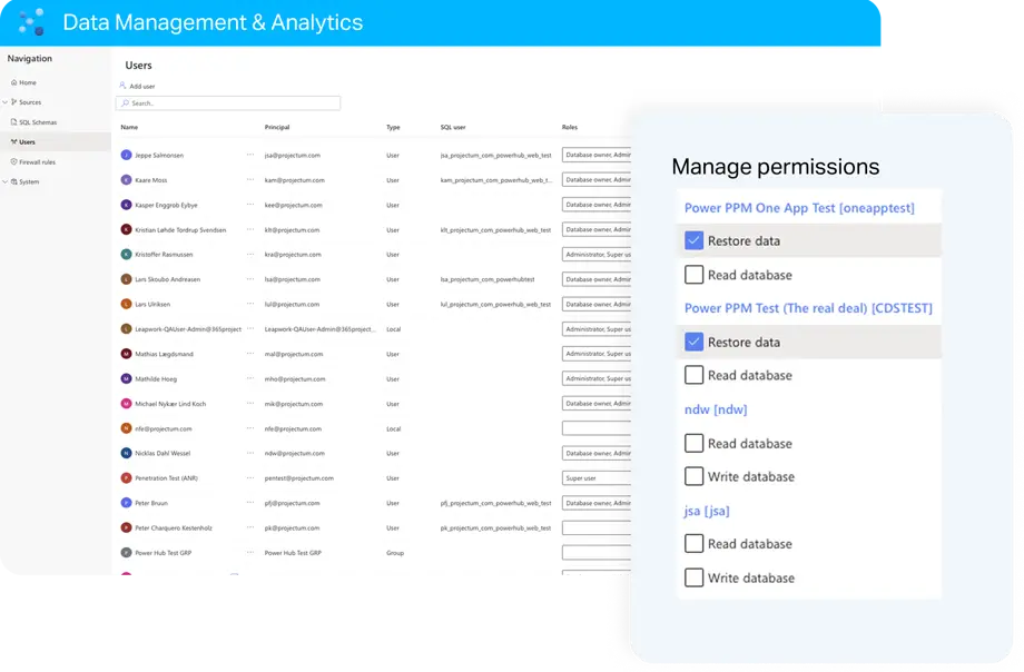 Toutes vos données sont facilement accessibles, stockées dans Azure SQL Database et disponibles dans un format optimisé pour le reporting, avec une gestion simple des utilisateurs et des accès.