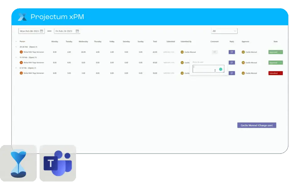Suivez vos heures directement dans Microsoft Teams et liez-les à votre solution de gestion de portefeuille. Créez des projets, des tâches et des affectations dans Projectum xPM, puis synchronisez-les automatiquement avec les utilisateurs concernés.