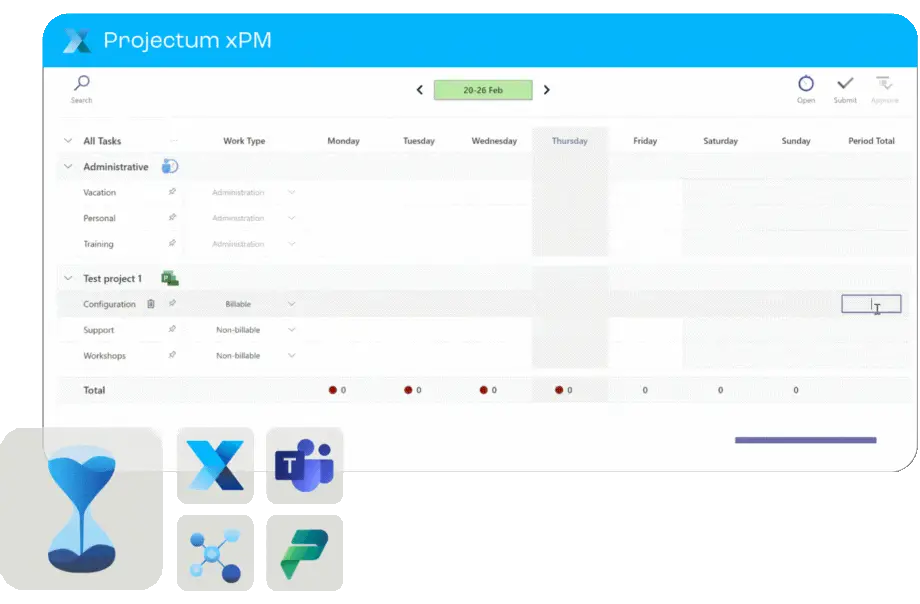 Oui, Projectum xPM Time Tracking s’intègre parfaitement à l’écosystème Microsoft et à d’autres outils de productivité. Construit sur Azure App Service, il est conçu pour fonctionner de manière fluide avec Microsoft 365, notamment Microsoft Teams, Power Platform, Microsoft Entra ID et Power BI. Cela garantit une synchronisation complète de vos données de suivi du temps avec vos flux de travail existants, éliminant la saisie manuelle et offrant une expérience unifiée.